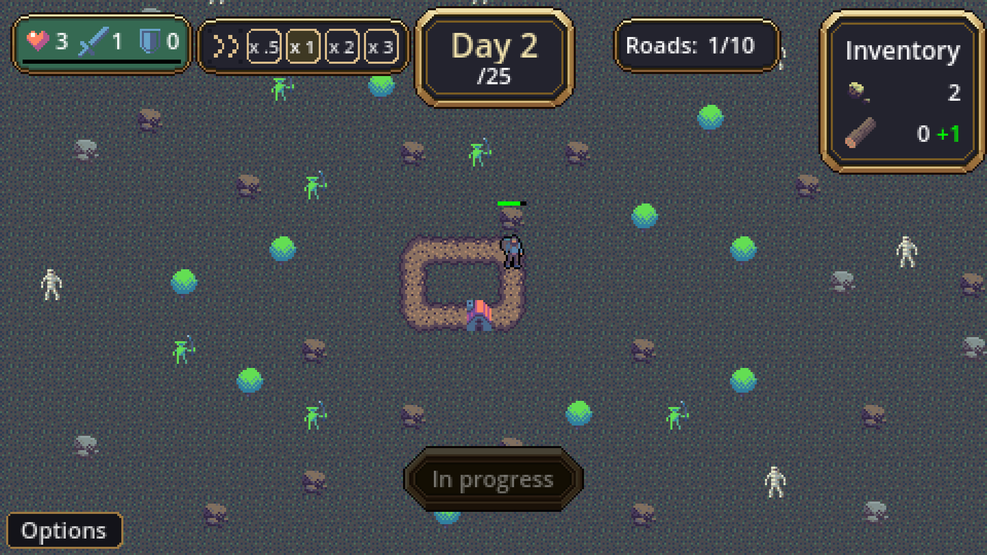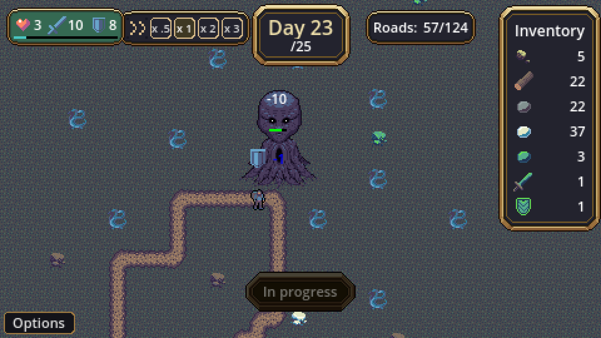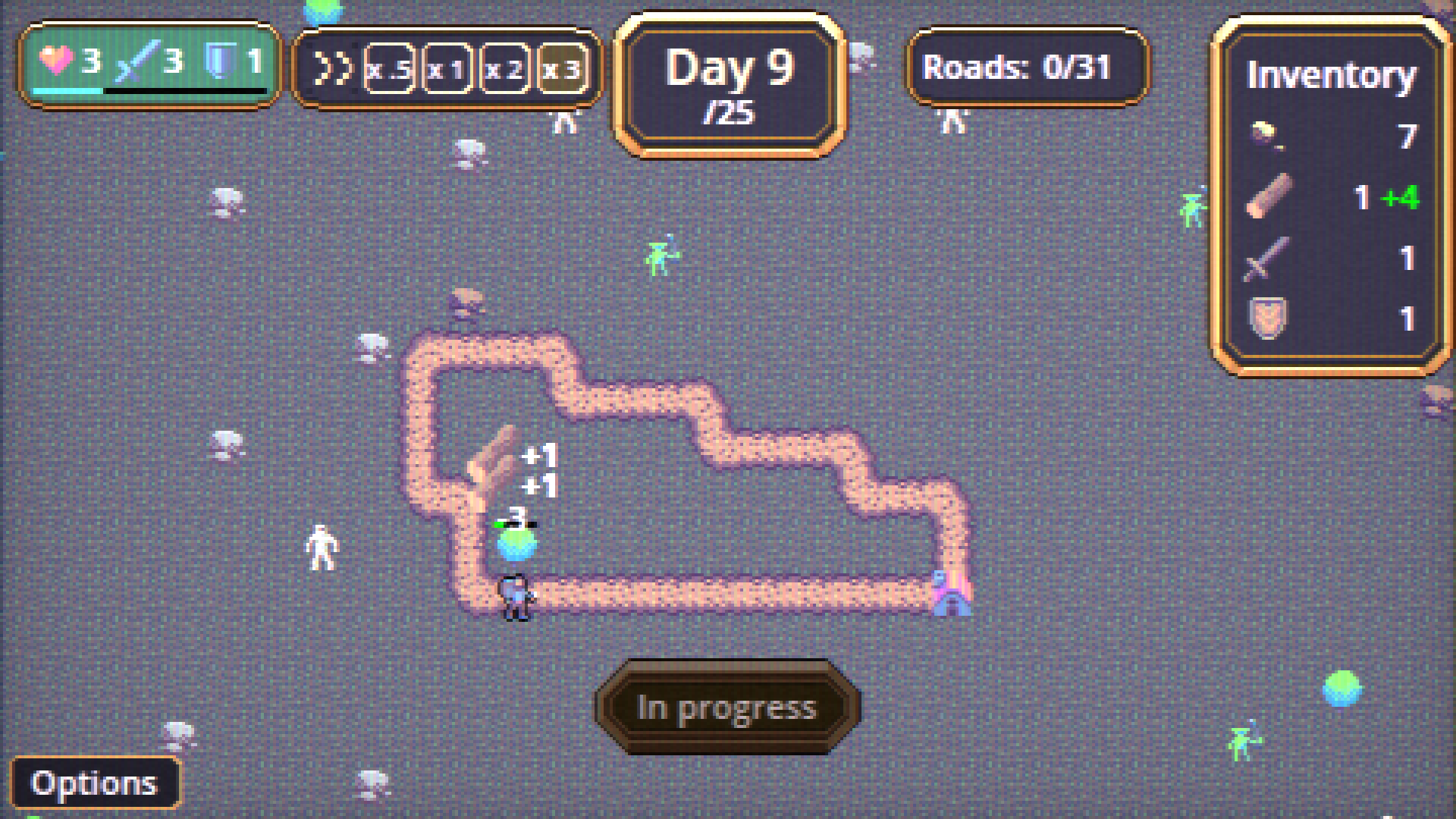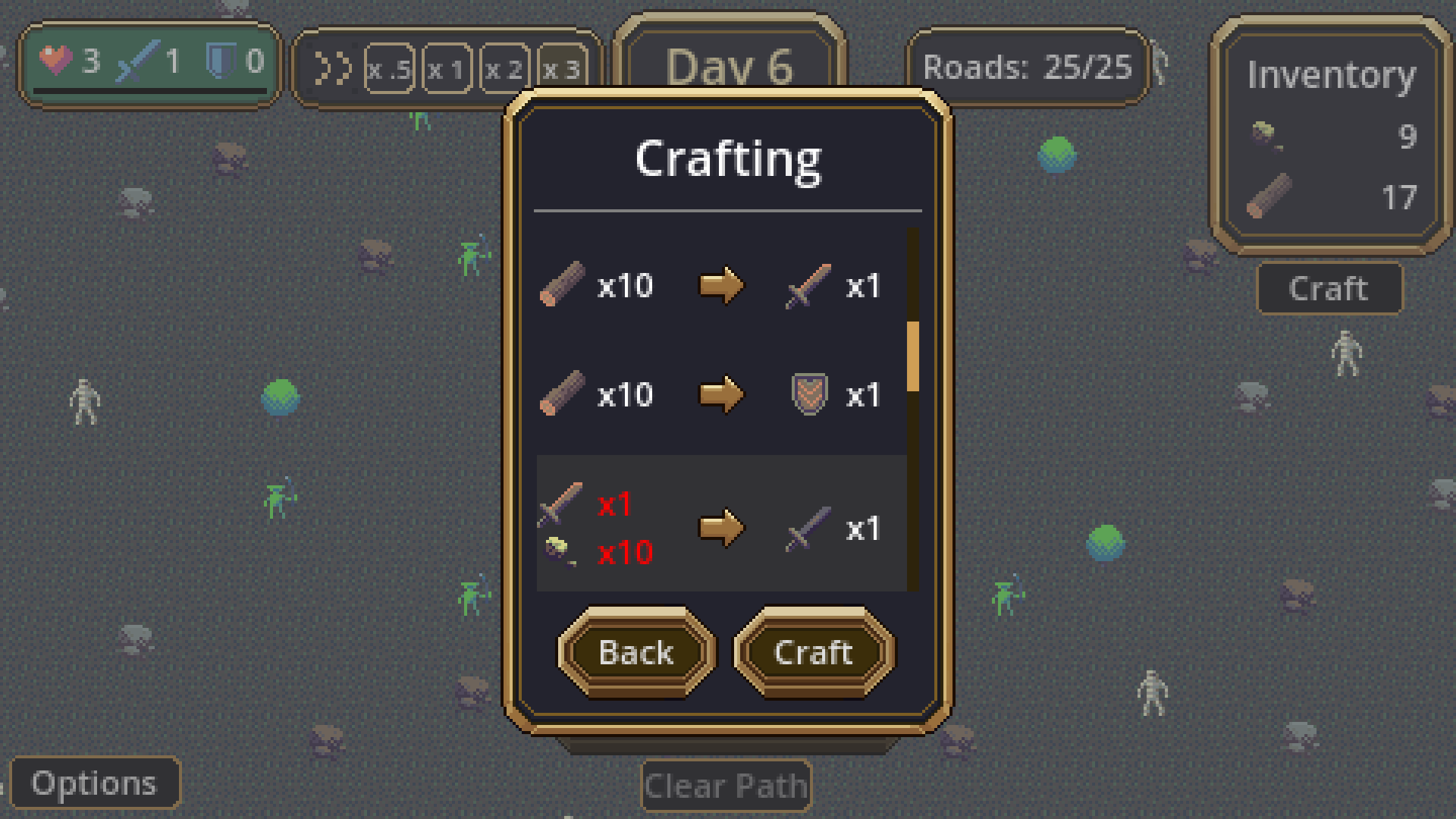Craft more roads and equipment, and level up so you can take on tougher enemies.
